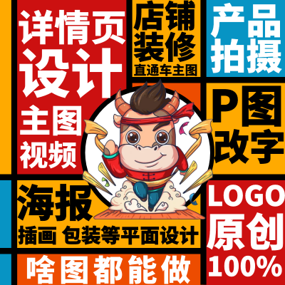 画图代画专业ps做图海报制作美工排版广告ai接单平面设计精修图片