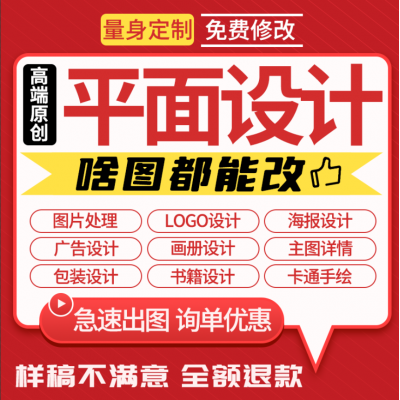画图代画专业ps做图海报制作美工排版广告ai接单平面设计精修图片