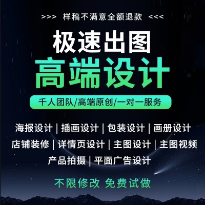画图代画专业ps做图海报制作美工排版广告ai接单平面设计精修图片