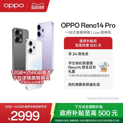 【政府补贴至高500元】OPPO Reno14 Pro 直播神器手机oppo官方旗舰店