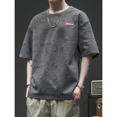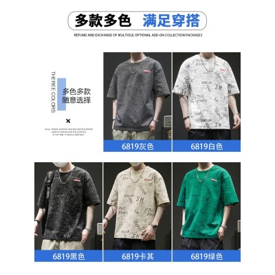 冰丝短袖t恤男士夏季2025新款宽松速干衣服男款胖子大码半袖体恤