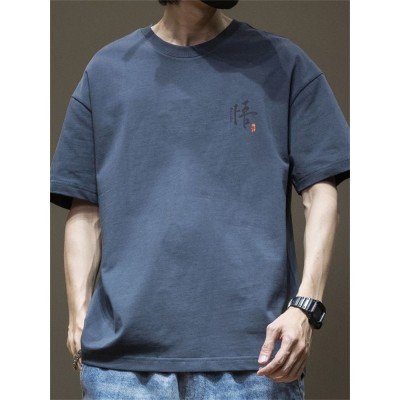 简木迹纯棉短袖t恤男夏季2025新款休闲潮牌潮流宽松男生圆领体恤