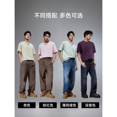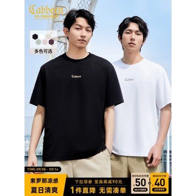 卡宾凉感印花短袖T恤男士夏季宽松透气冰丝上衣休闲简约圆领t恤男