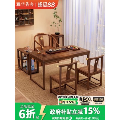 小户型阳台茶桌椅组合新中式胡桃木实木茶台茶几禅意功夫泡茶道桌