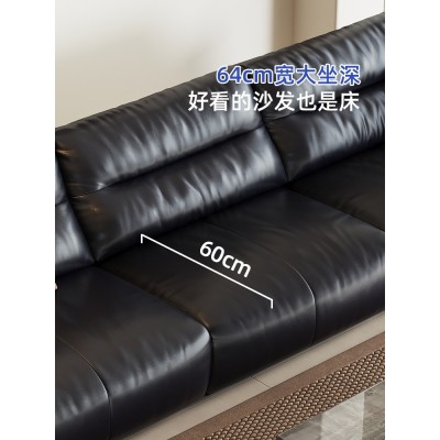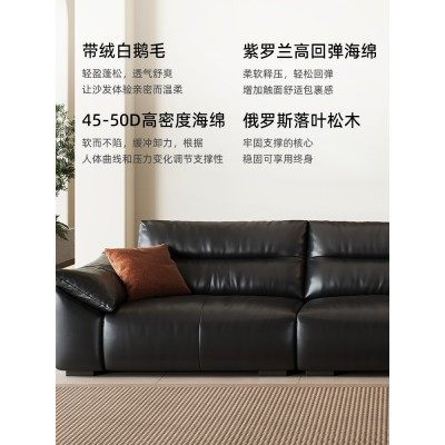 意式头层牛皮沙发轻奢高靠背直排别墅客厅2025设计师款暗色皮艺